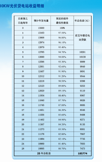 海岳和邮政储蓄银行签订合作协议,海岳担保为户用电站客户推出“阳光贷”服务,根据“阳光贷”服务,个人只需提供少许启动资金,按年还款,贷款年限五年,海宇为您提供贷款偿还的兜底服务,保证五年期还清贷款本息。