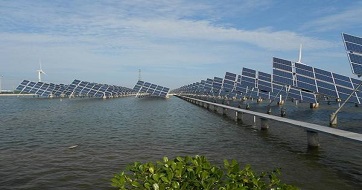 渔光互补是指渔业养殖与光伏发电相结合,在鱼塘水面上方架设光伏板阵列,光伏板下方水域可以进行鱼虾养殖。